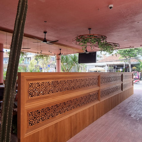 Kori Restaurant, a project based in Canggu, Bali. As your dedicated interior contractor, we provide expert design and construction services, utilizing unique wooden antiques and terracotta finishes to create an unparalleled dining experience.