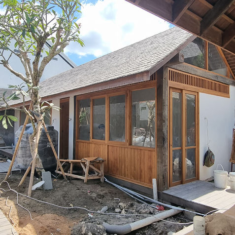 This contemporary wooden house beautifully blends natural materials with modern design. Featuring elegant teak wood and durable ulin decking, the structure is complemented by a sleek cement plaster finish. The harmonious mix of wood and concrete creates a warm yet sophisticated atmosphere, making it a perfect retreat for modern living. This project showcases innovative that respects nature while embracing contemporary aesthetics.